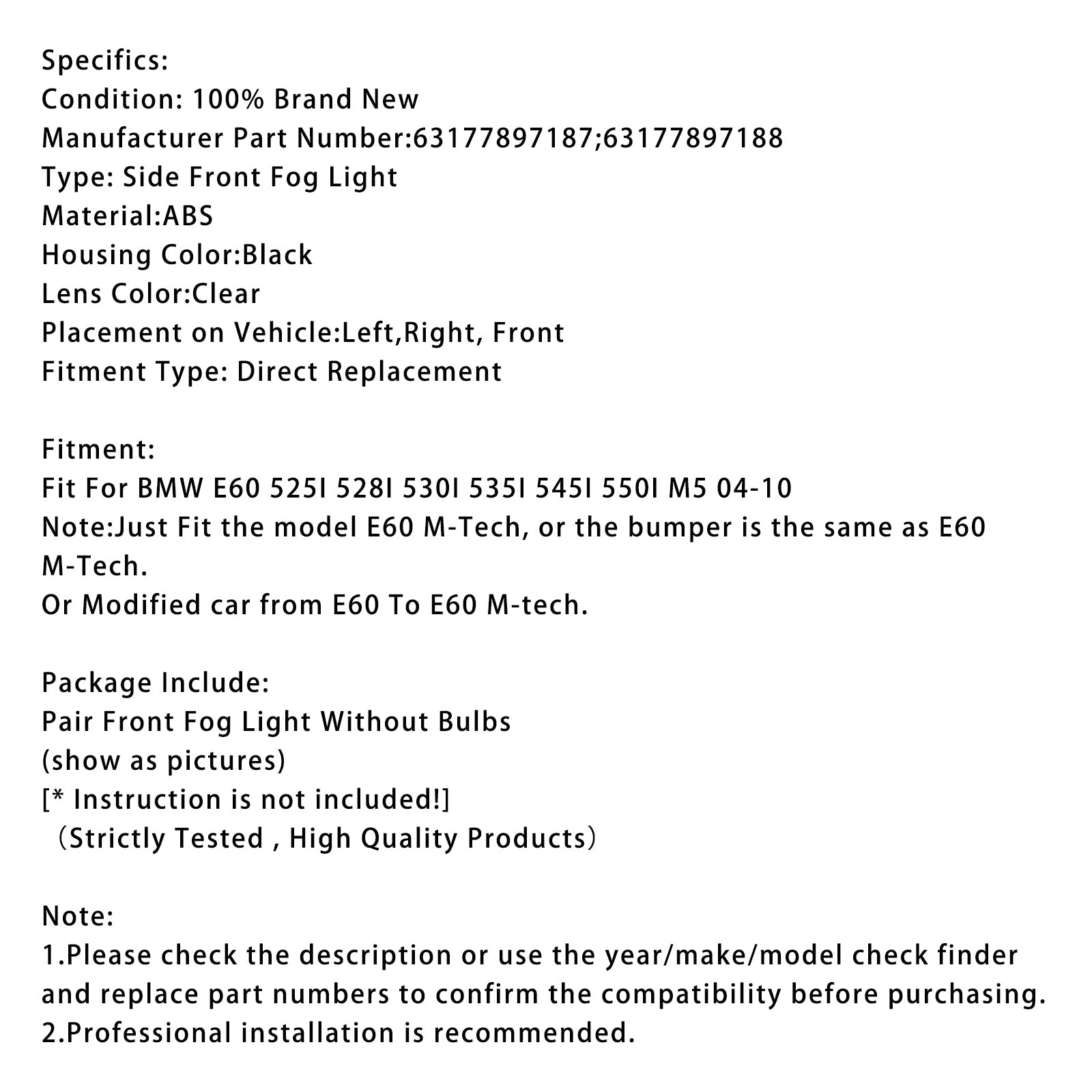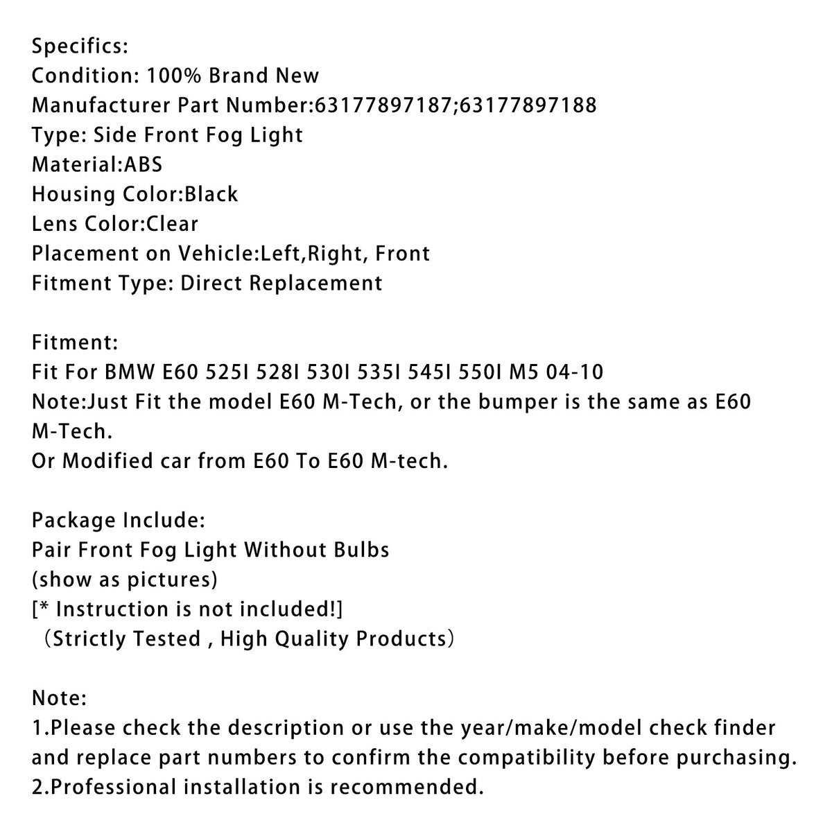 BMW E60 525I 530I 535I 545I 550I M5 2004-2010 63177897187用 フロントフォグランプ ペア