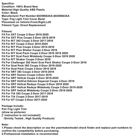 ダッジ チャレンジャー 2015-2021 68259662AA 用 フロントフォグランプトリム ペア