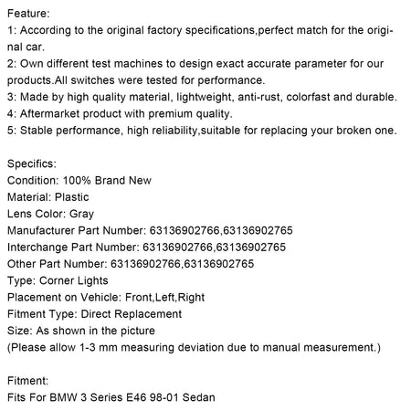 BMW 3シリーズ E46 1998-2001 セダン用 グレーコーナーサイドライト ペア 63136902766