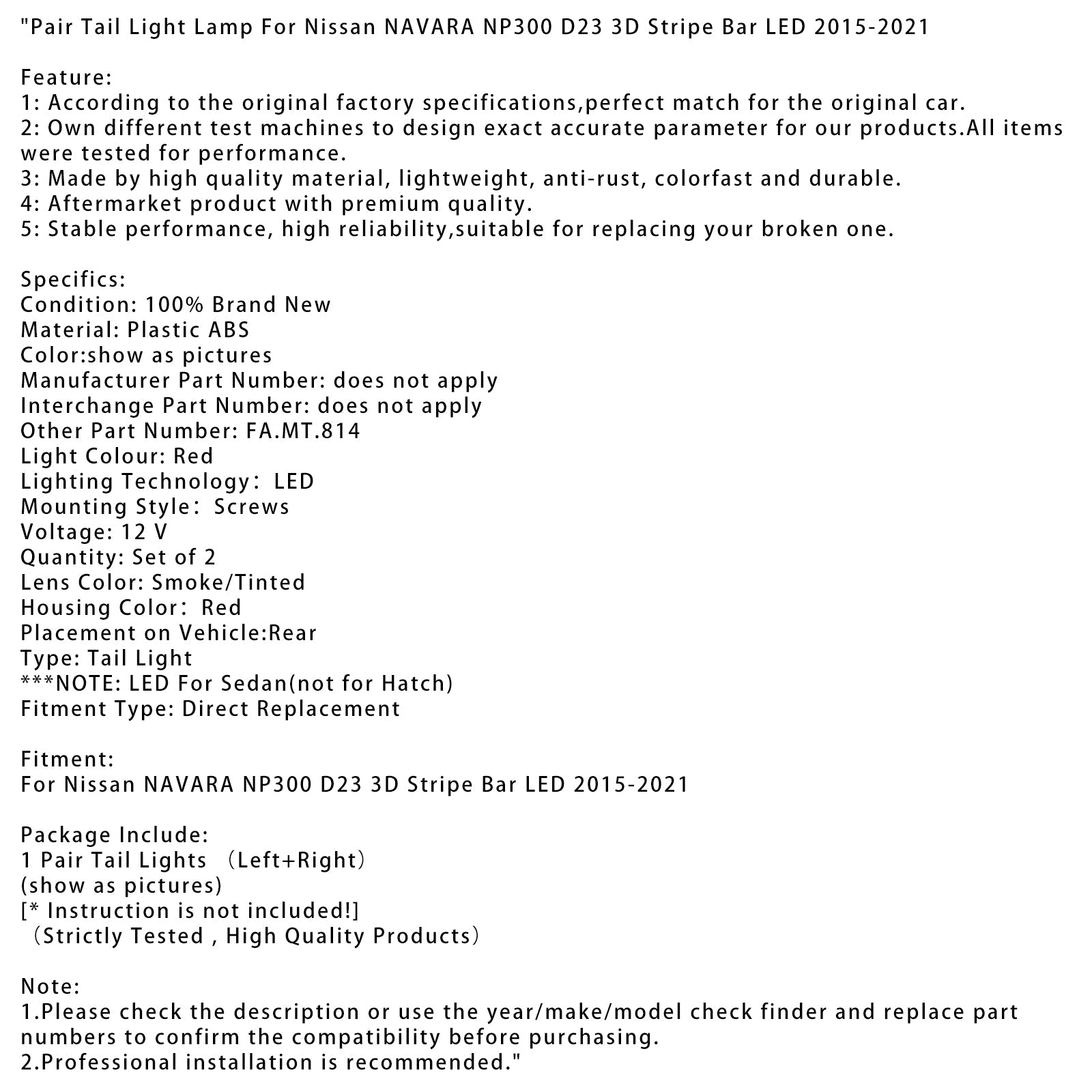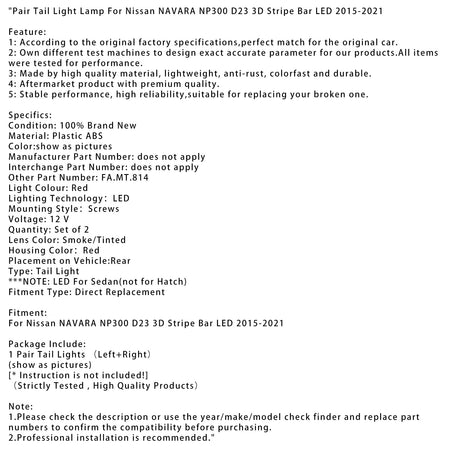 日産 NAVARA NP300 D23 3D ストライプ バー LED 2015-2021 用ペア テール ライト ランプ