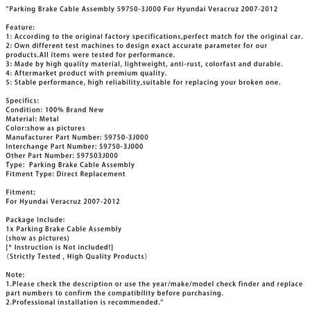 パーキングブレーキケーブルアセンブリ 59750-3J000 ヒュンダイ ベラクルス 2007-2012年式用