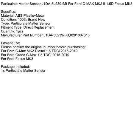 粒子状物質センサー J1DA-5L239-BB フォード C-MAX MK2 II 1.5D フォーカス MK3用
