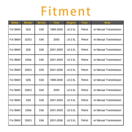 BMW 330Ci E46 2001-2006 L6 3.0L ガソリン マニュアルトランスミッションに適合