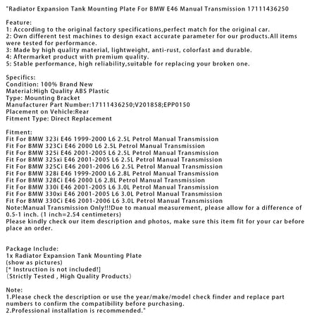 BMW E46 マニュアルトランスミッション用ラジエーター膨張タンク取り付けプレート 17111436250
