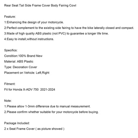 リアシートテールサイドフレームカバーボディフェアリングカウルホンダX-ADV 750 2021-2024に適合