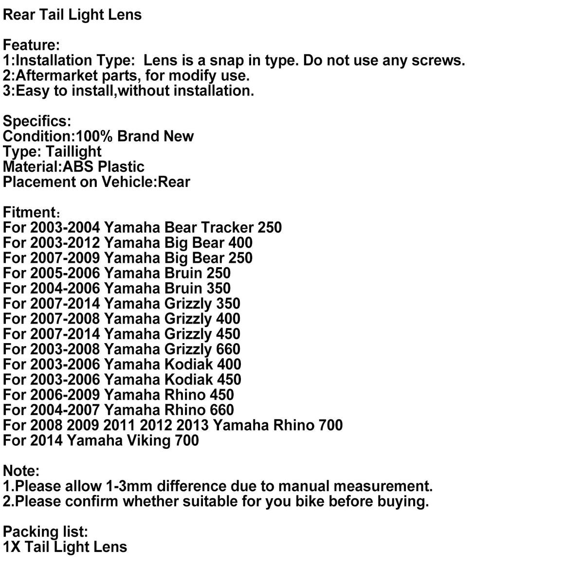 リアテールライトレンズ ヤマハ グリズリー コディアック ビッグベア ブルイン ライノ 450 660 700 に適合