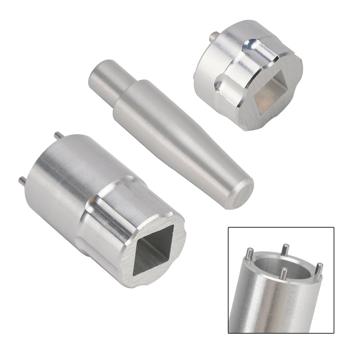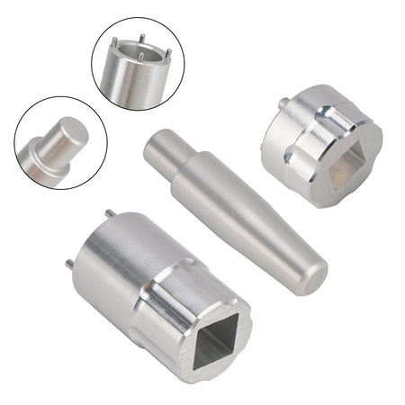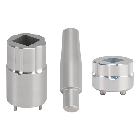 これらは、DPX2 FOXショックのリバウンドキャップとベースバルブドライバーを取り外すために使用します。これらはFOXツールのクローンであり、FOX部品番号398-00-761および398-00-763に適合するように設計されています。どちらも硬化鋼製ピンと3/8インチ角ドライブを備えています。また、油が付着した際にグリップ力を高めるため、側面にノッチを追加しました。バレットツールは、FOX DPX2のシールを切断することなく、シールヘッドをシャフトにスライドさせるために使用されます。FOX部品番号398-00-764に適合するように設計されています。