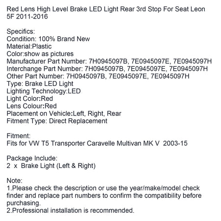 VW フォルクスワーゲン トランスポーター T5 T6 用 赤色 3rd ハイレベル リアブレーキライト バーン 4ドア