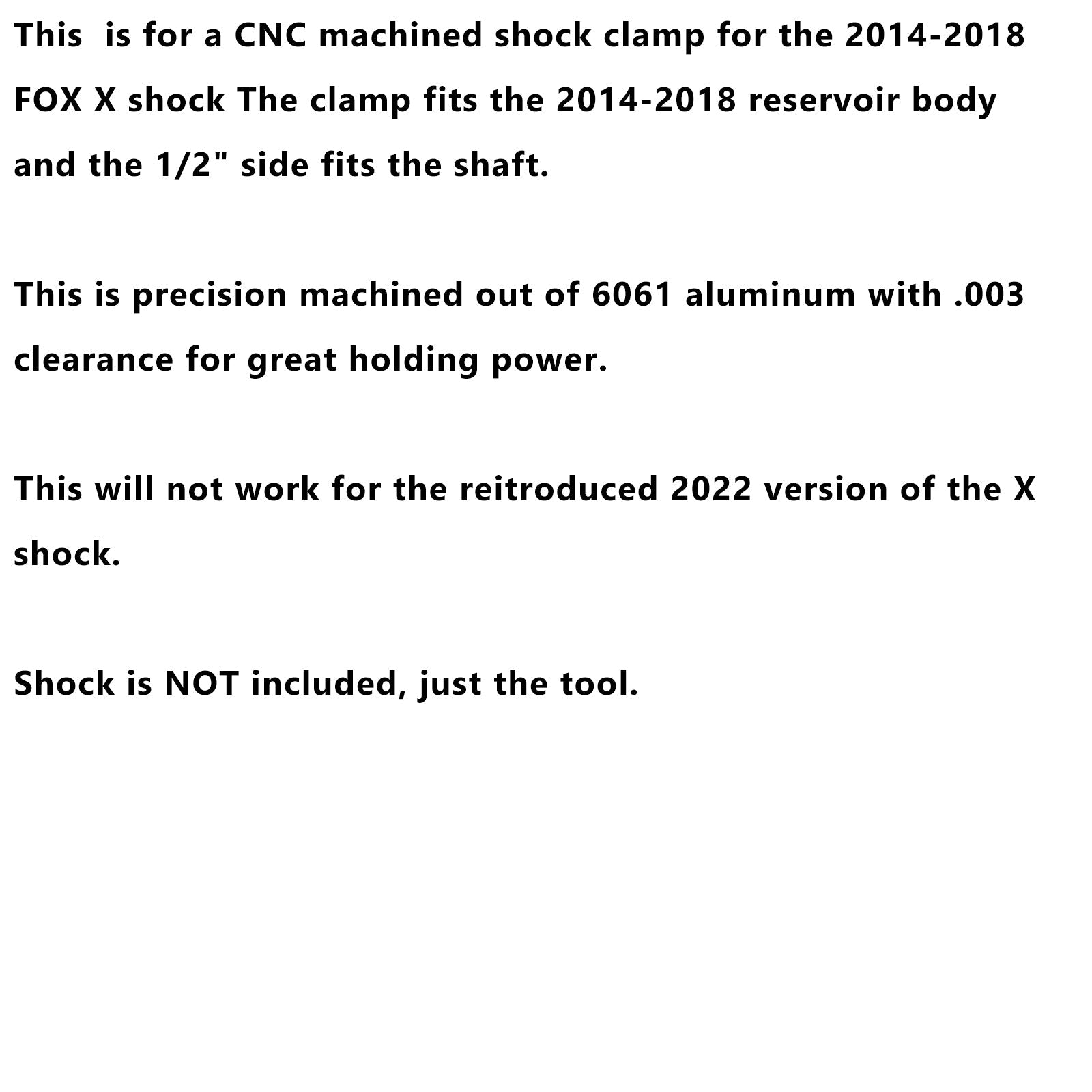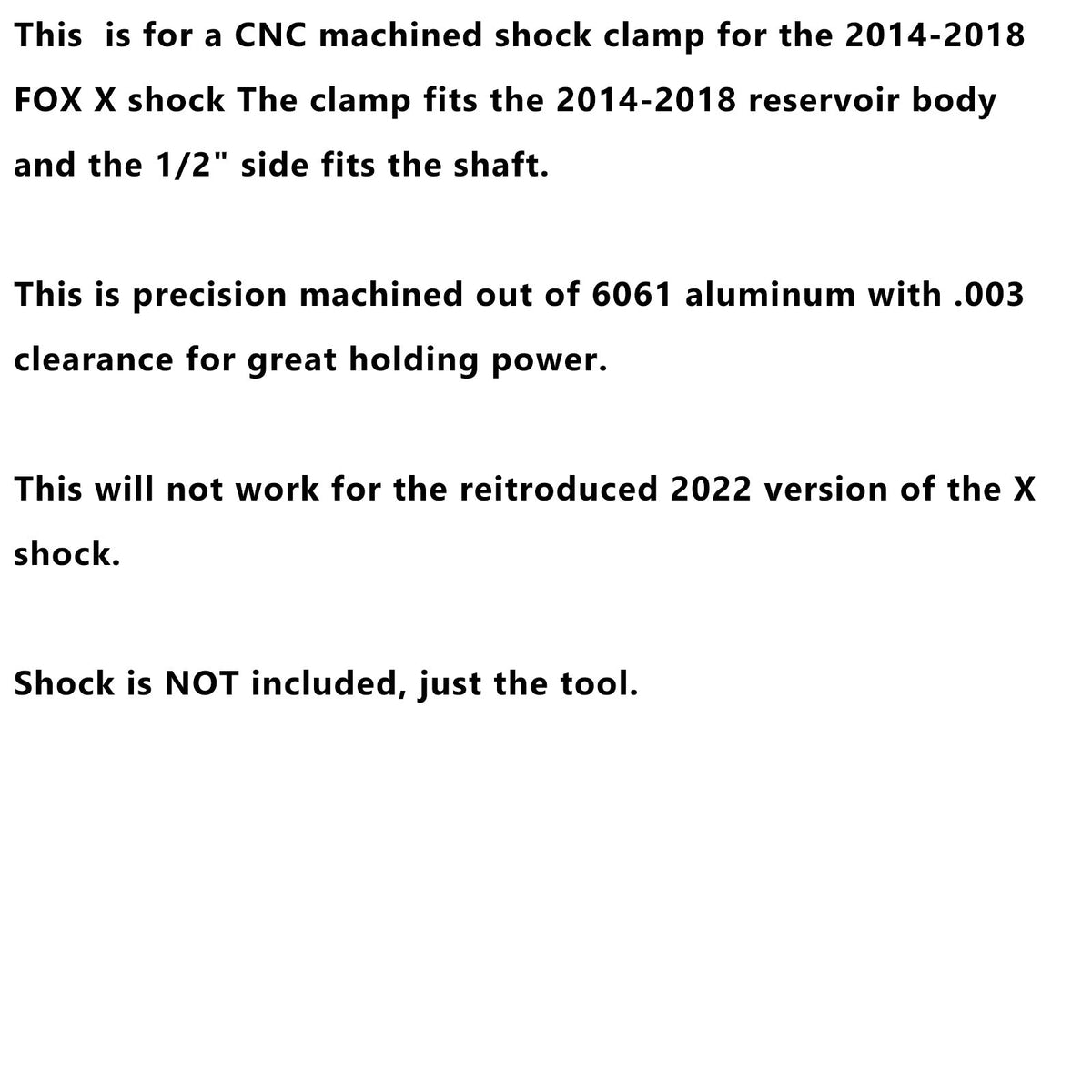 これは、2014~2018 FOX X ショック用の CNC 機械加工ショック クランプです。クランプは 2014~2018 リザーバー本体に適合し、1/2 インチ側はシャフトに適合します。