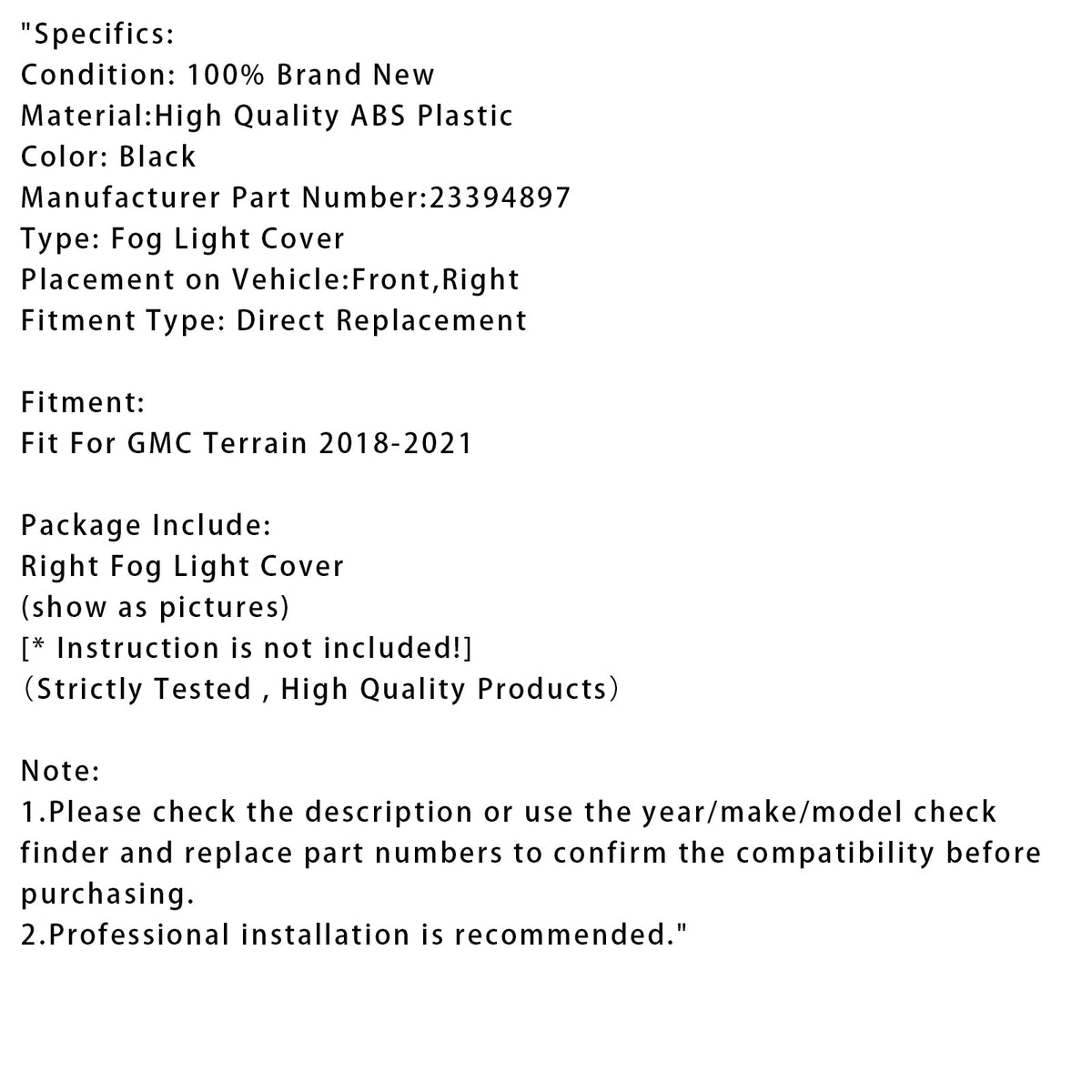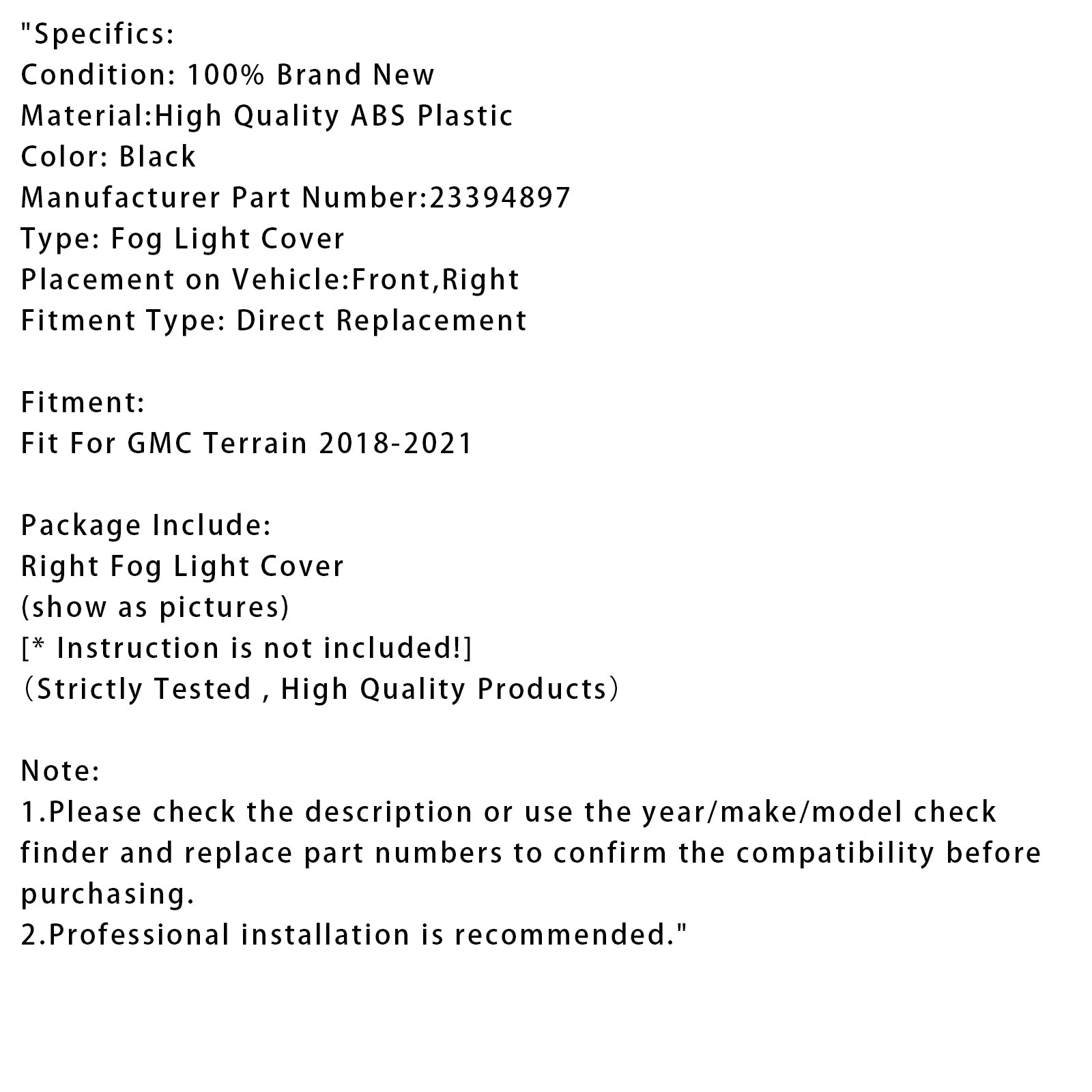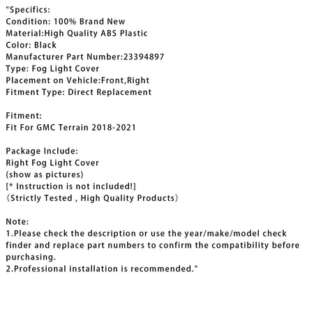 GMC テレイン 2018-2021 用 右側バンパー フォグランプカバー 23394897