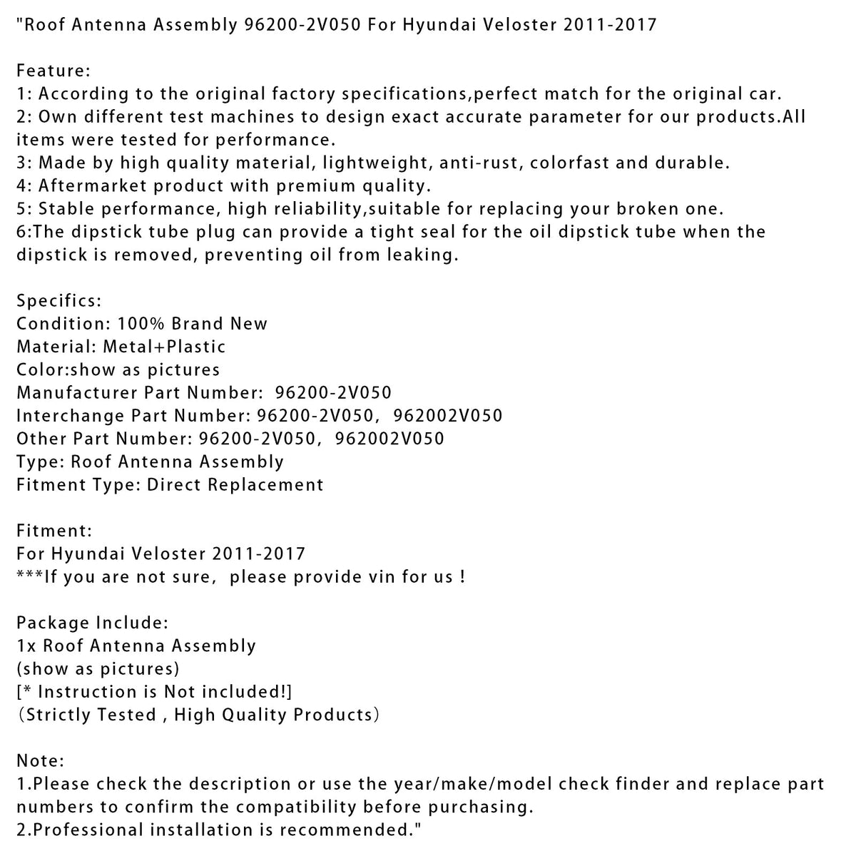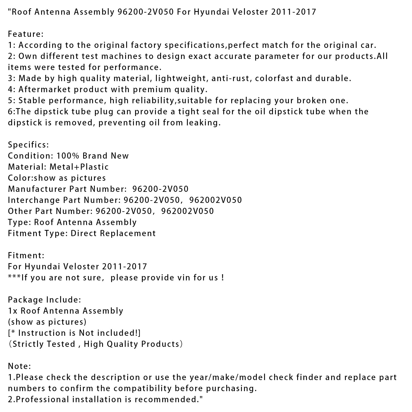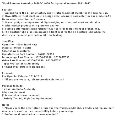 ルーフアンテナアセンブリ 96200-2V050 ヒュンダイ ヴェロスター 2011-2017用