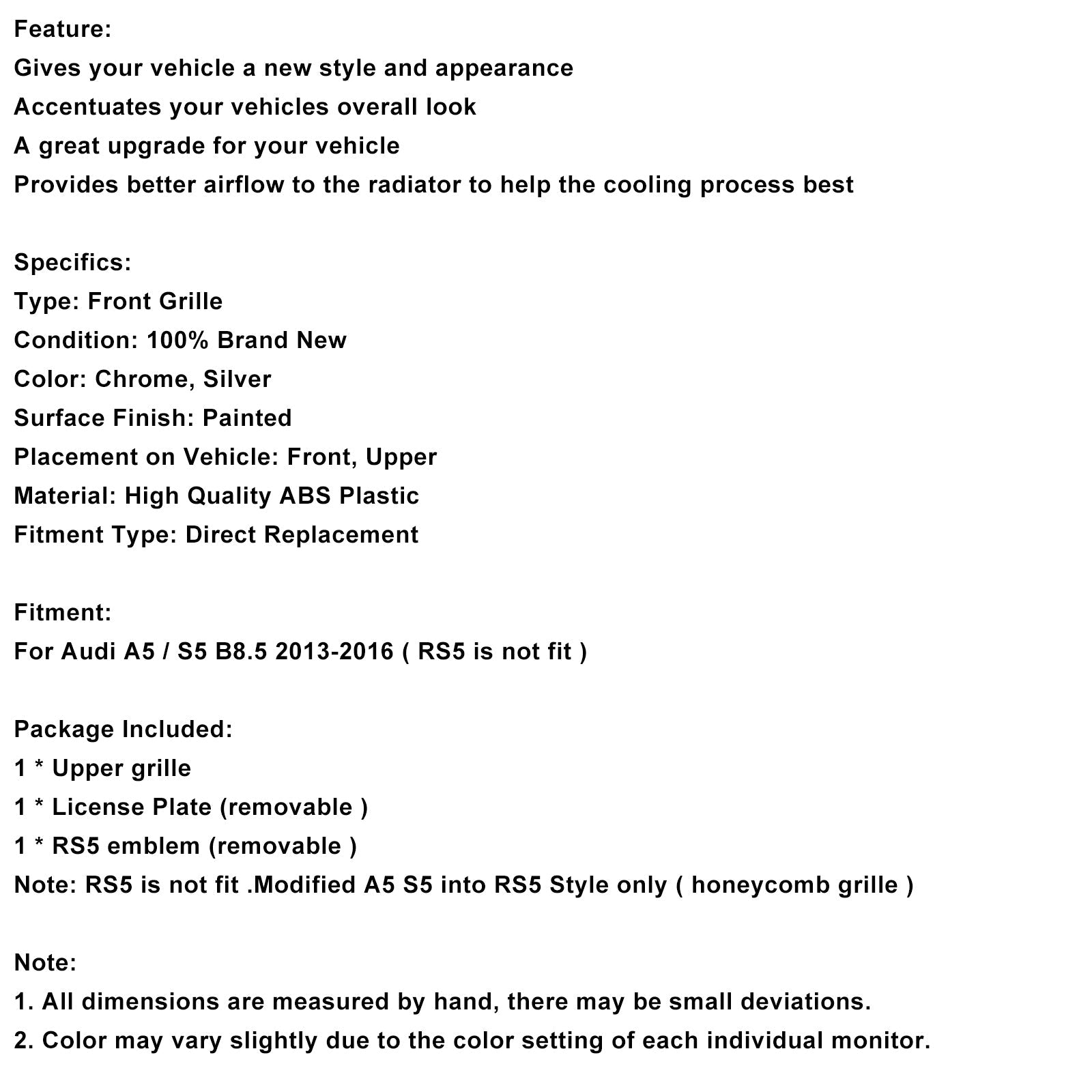 RS5スタイル ハニカムフロントバンパーグリル Audi A5 S5 B8.5 2013-2016に適合