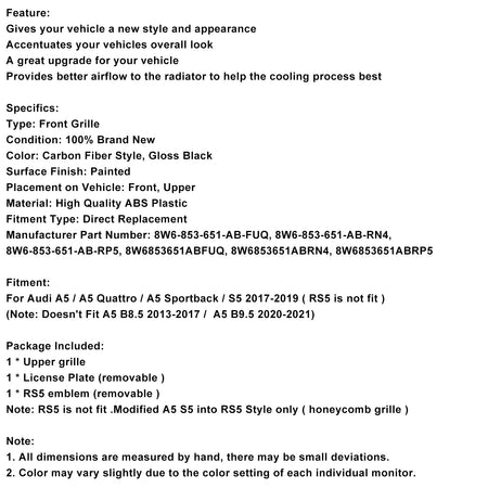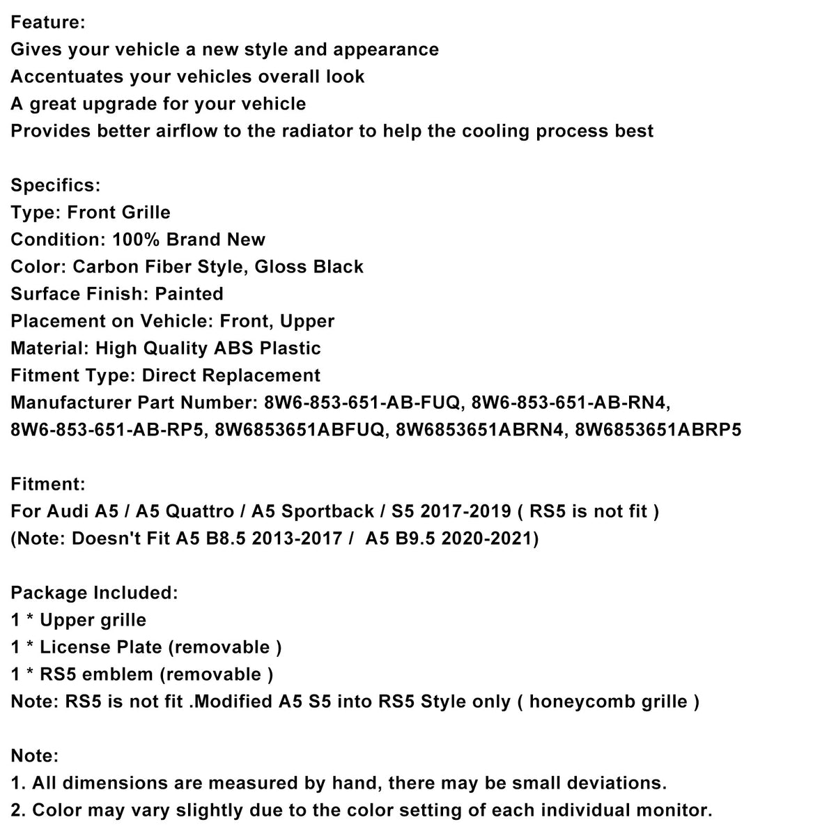 RS5スタイル スポーツフロントハニカムグリル Audi A5 S5 B9 2017-2019に適合