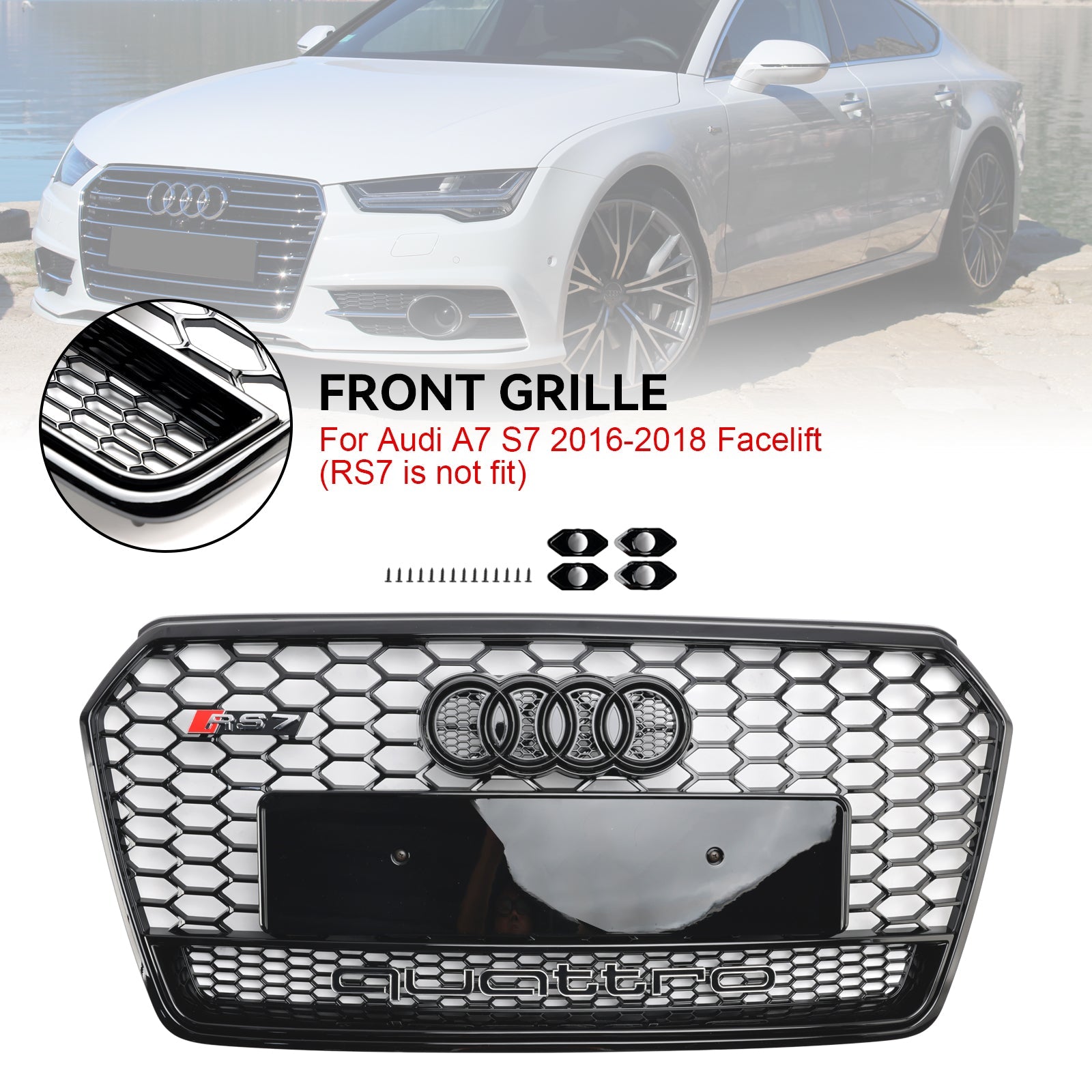 RS7 スタイル ハニカム フロント バンパー グリル グリル Audi A7 C7 S7 2016-2018 ブラック
