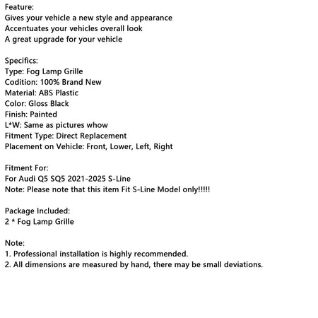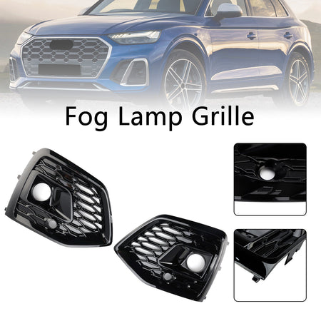 RSQ5スタイル フロントフォグランプグリルカバー Audi Q5 SQ5 S-Line 2021-2025 ブラック