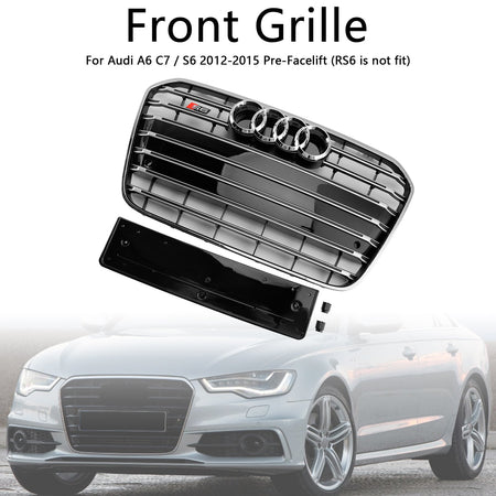 S6スタイルフロントバンパーグリルグリルフィットアウディA6 C7 2012-2015クローム