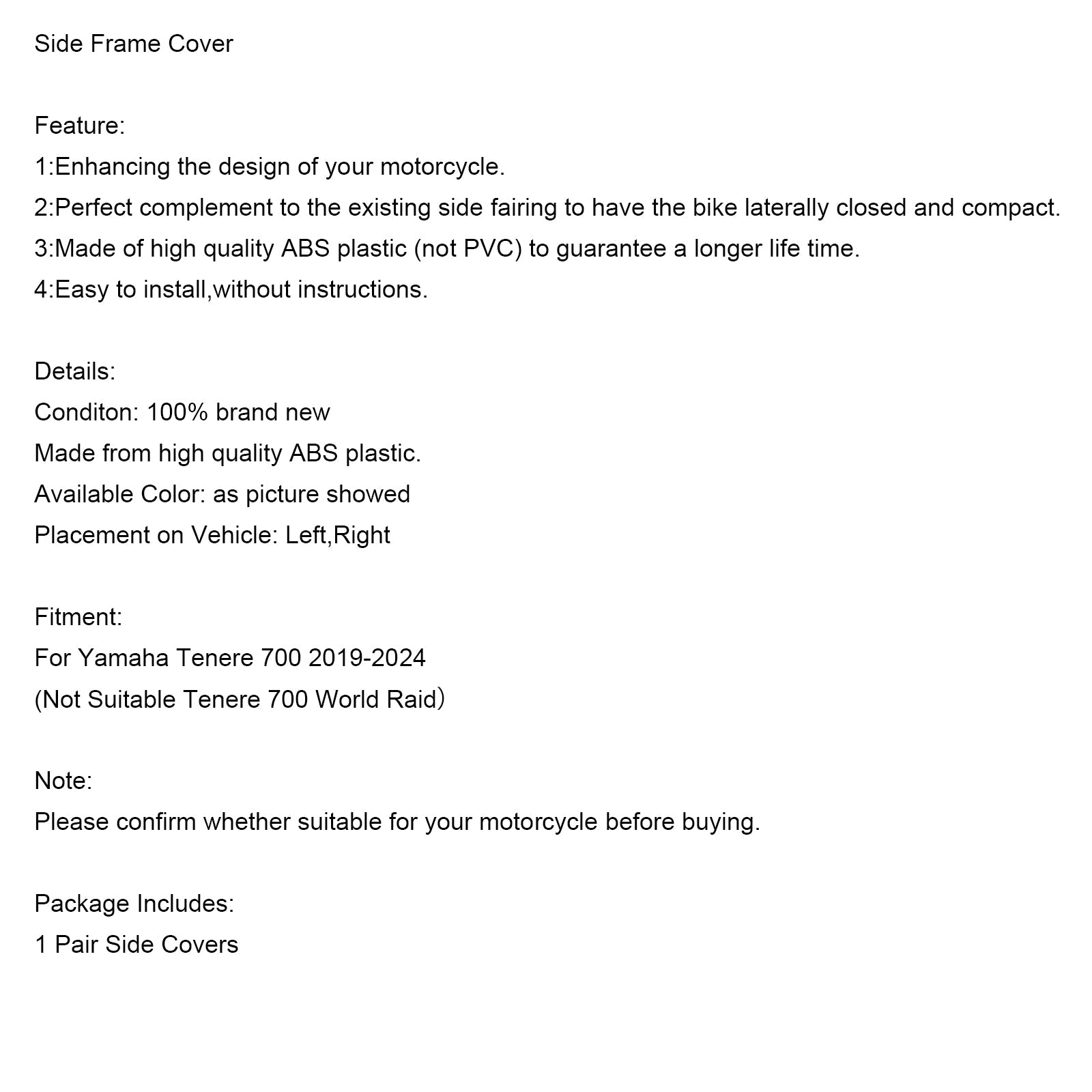 2019-2024 ヤマハ テネレ 700 サイドフレームパネルプロテクターフェアリングカバー
