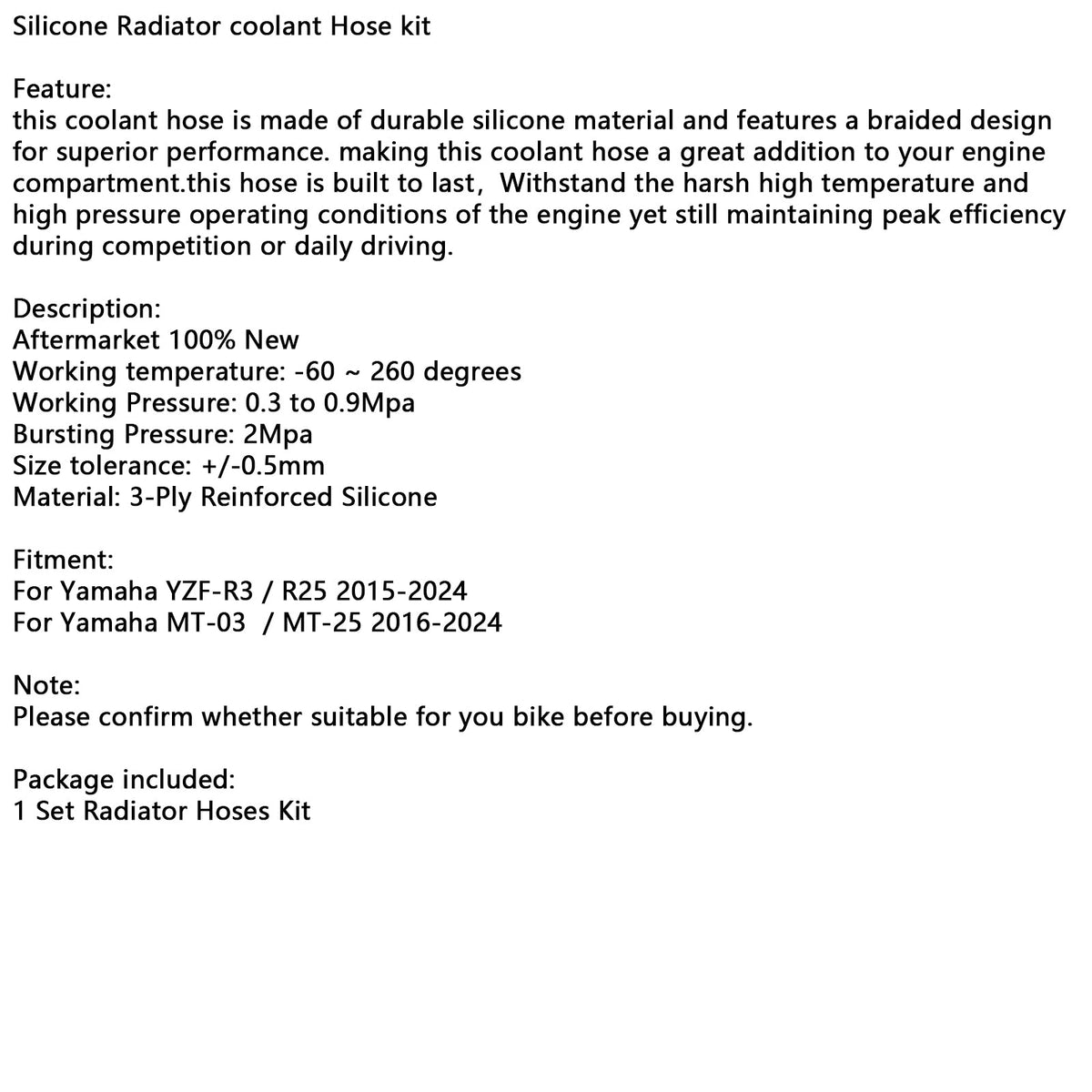シリコンラジエーター冷却ホースキット ヤマハ MT-03 MT-25 YZF R3 R25 2015-2024用