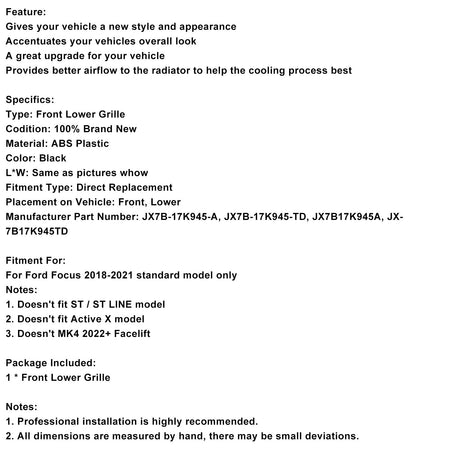 Stスタイル フロントバンパー ロアグリル グリル フォードフォーカス MK4 2018-2021 ブラック