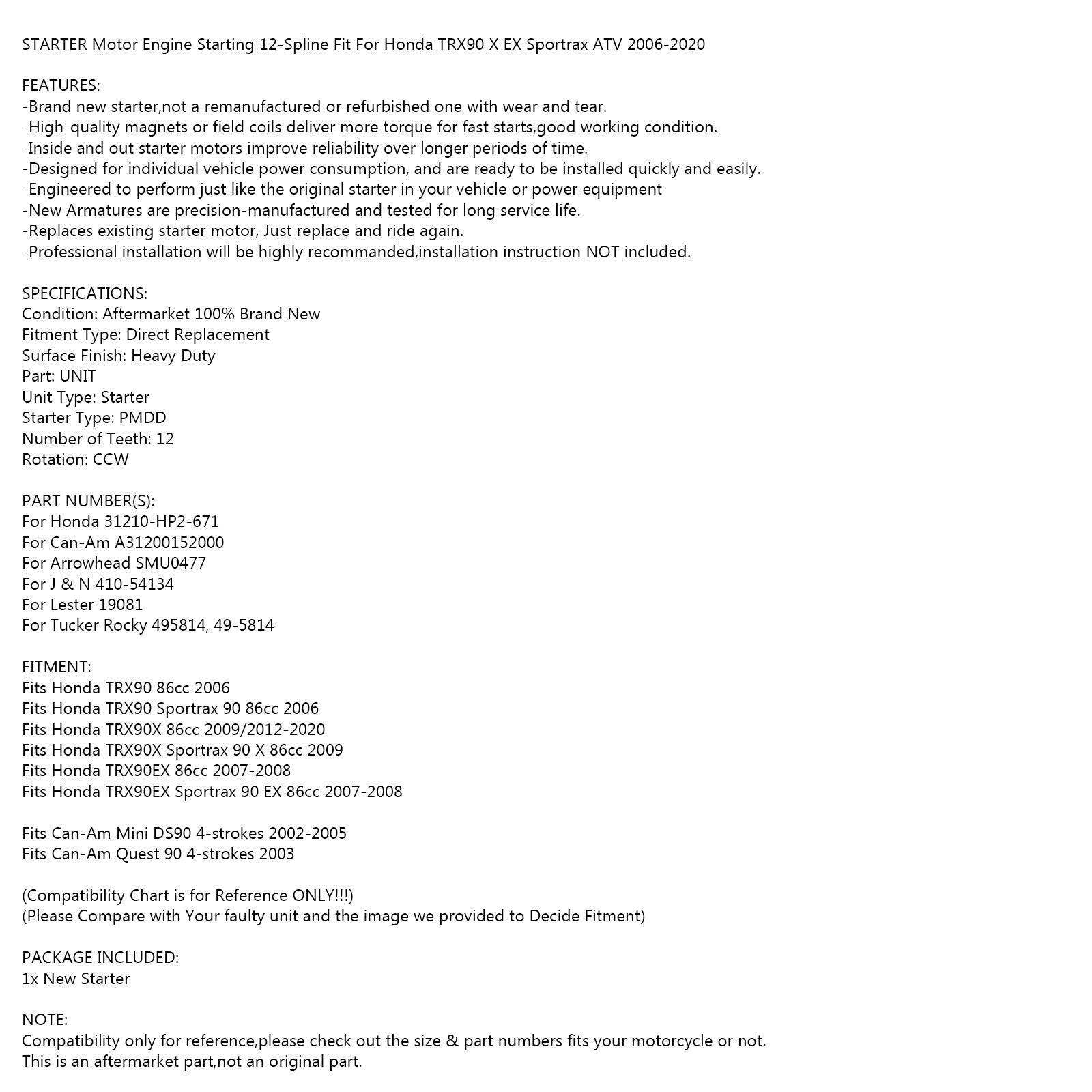 ホンダTRX90X 86cc 2009/2012-2020に適合