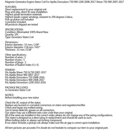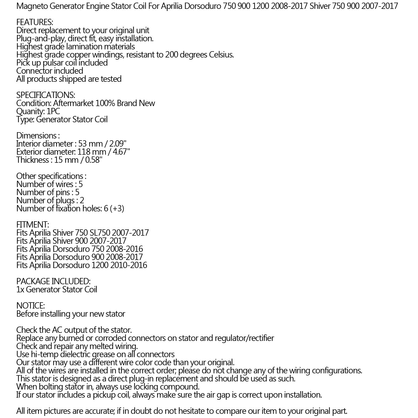 マグネトジェネレーターエンジンステーターコイル、Aprilia Dorsoduro Shiver 750 900 2008-2017 640168 に適合