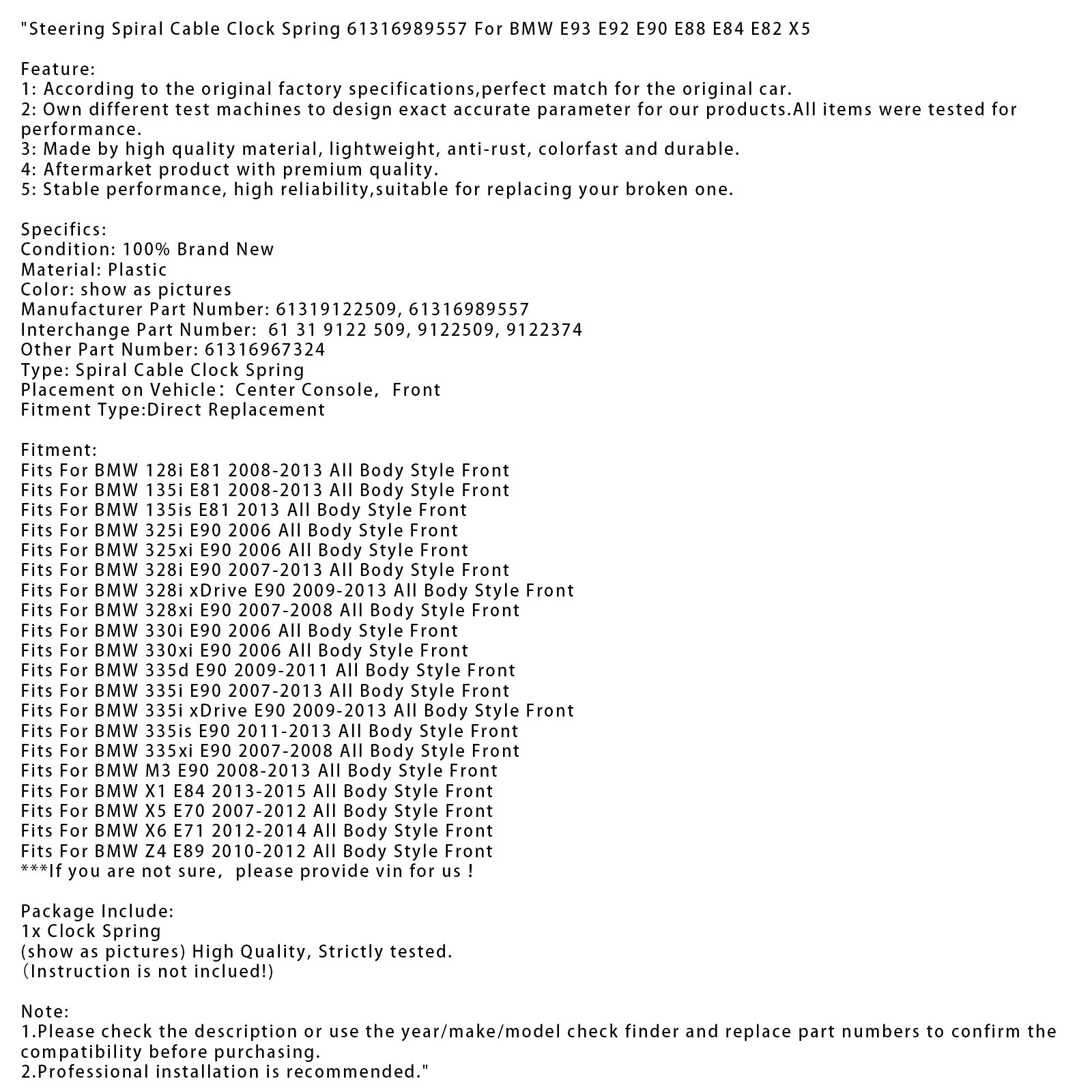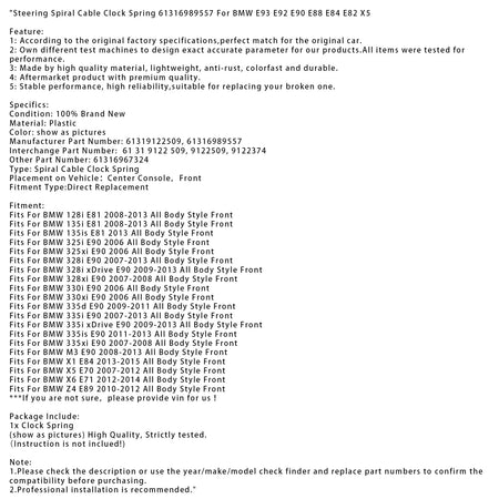 ステアリングスパイラルケーブル クロックスプリング 61316989557 BMW E93 E92 E90 E88 E84 E82 X5用