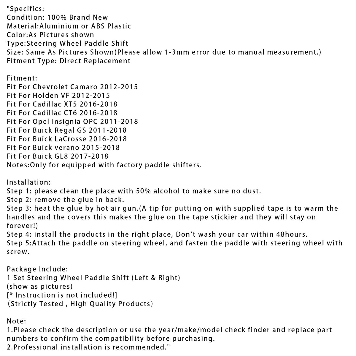 ステアリングホイールパドルシフト1セット(左と右)