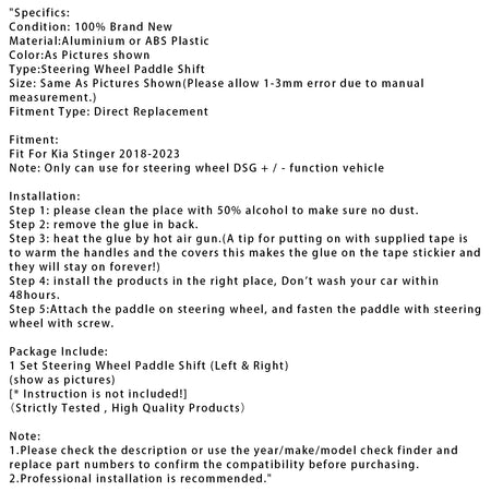 Kia Stinger 2018-2023用ステアリングホイールパドルシフターエクステンション