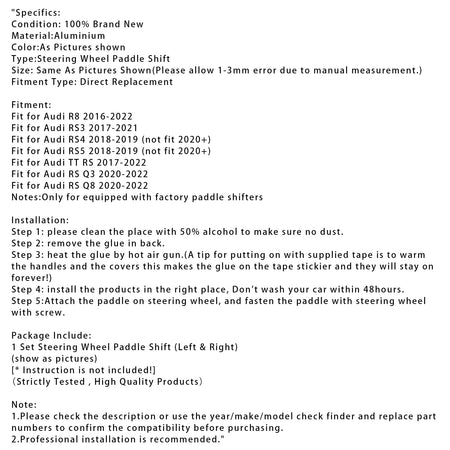 Audi RS5 RS3 R8 TT RS アルミニウム製ステアリングホイールパドルシフターエクステンション