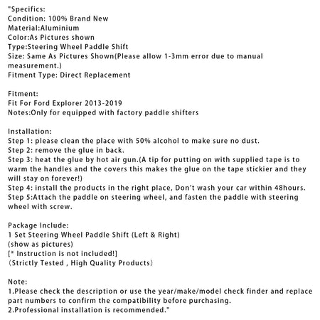 フォード エクスプローラー 2013-2019 アルミニウム製ステアリングホイール パドルシフターエクステンション