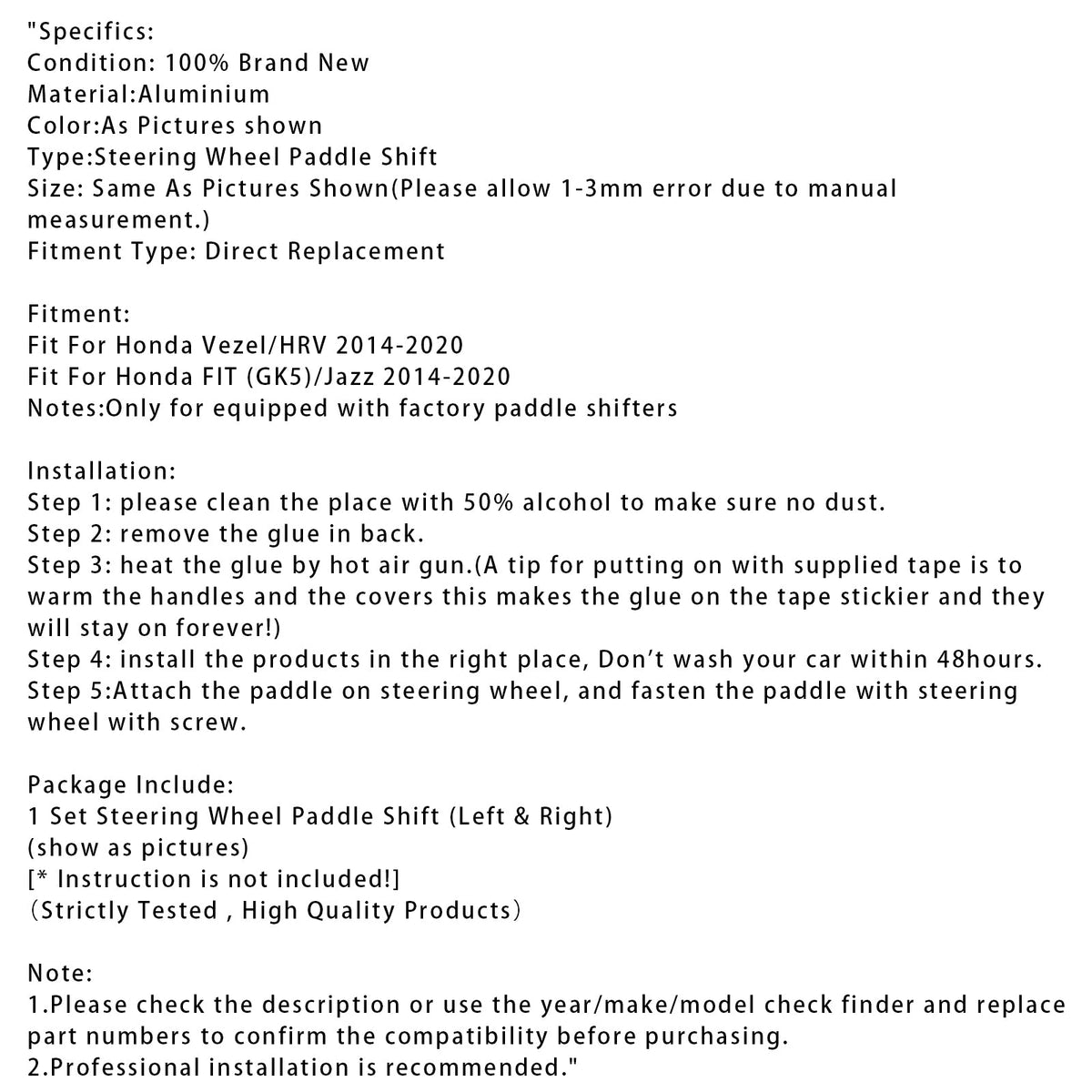 1. ご購入前に、説明を確認するか、年式/メーカー/モデルチェックファインダーを使用して部品番号を交換し、互換性を確認してください。