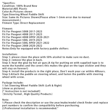 プジョー 2017-2023 に適合するステアリングホイールパドルシフターエクステンション