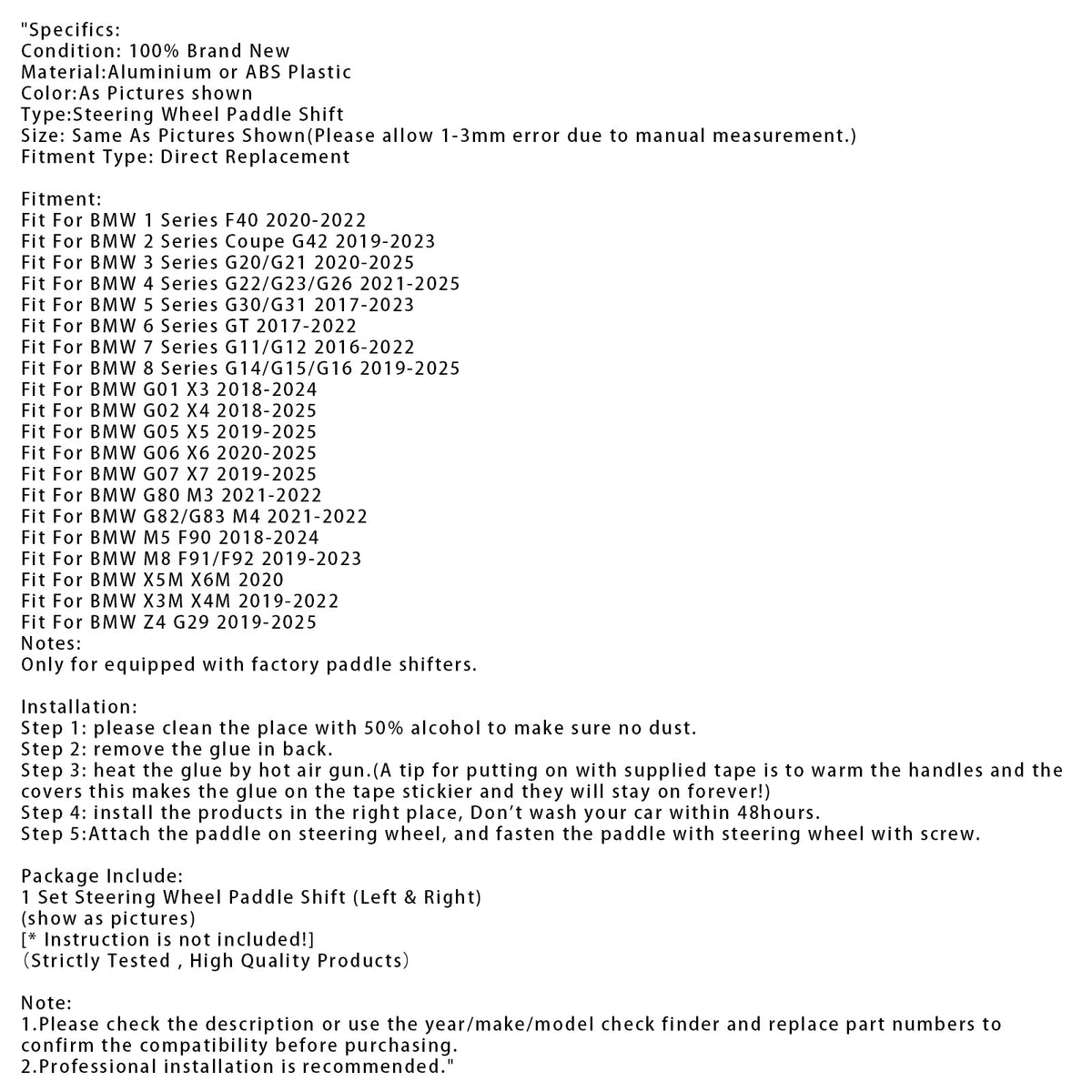 BMW G20 G21 G30 G31 F40 F22 F23用ステアリングホイールパドルシフターエクステンション