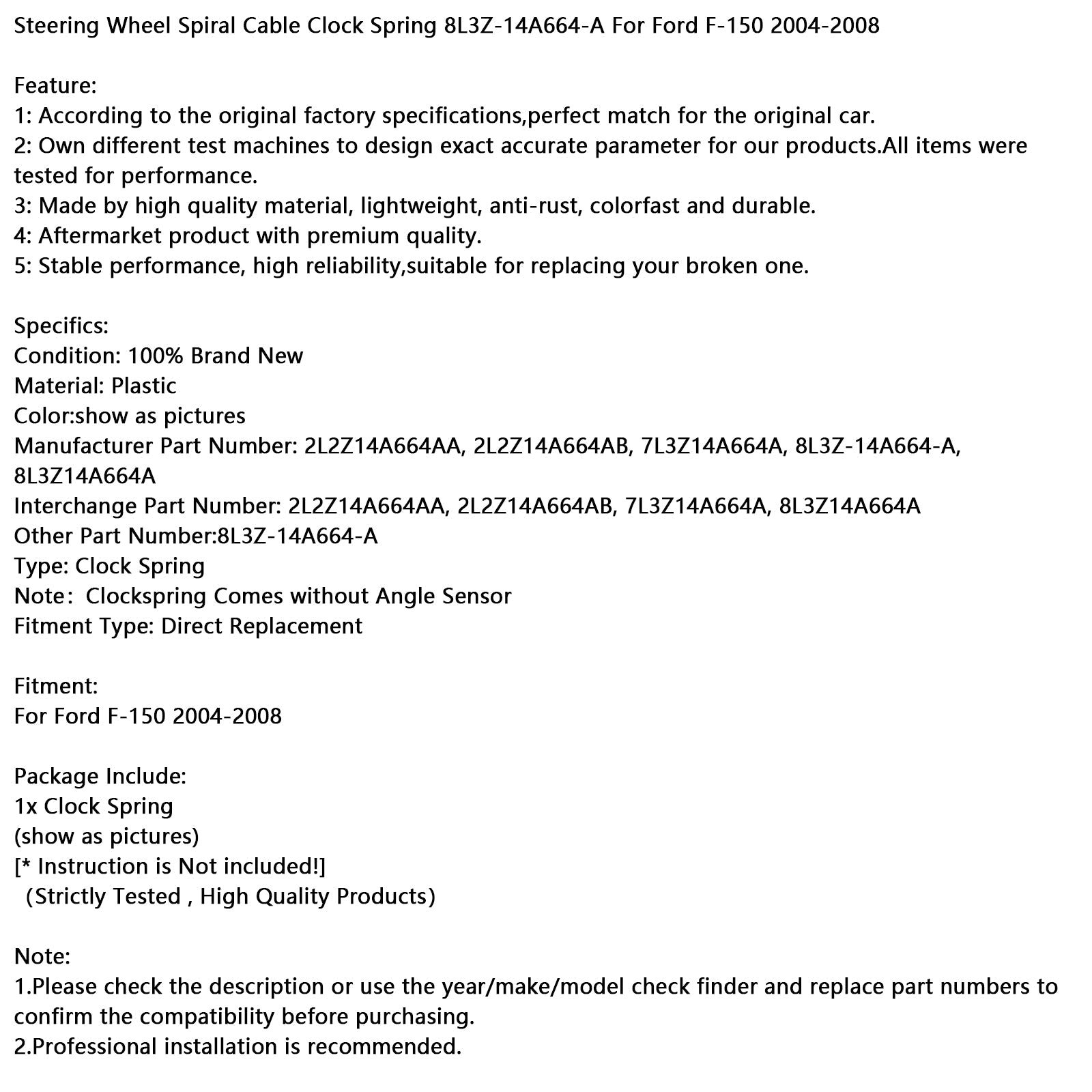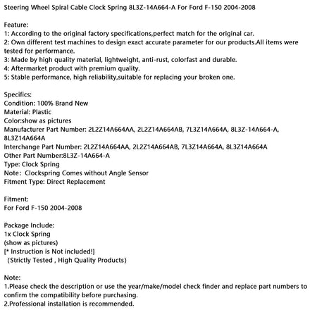 ステアリングホイールスパイラルケーブルクロックスプリング 8L3Z-14A664-A フォード F-150 2004-2008用