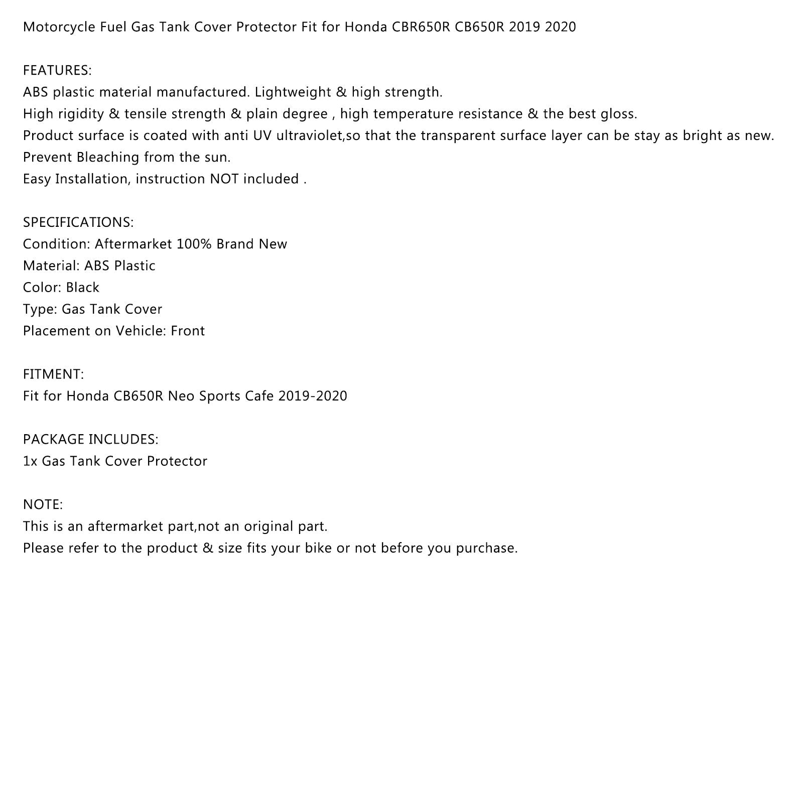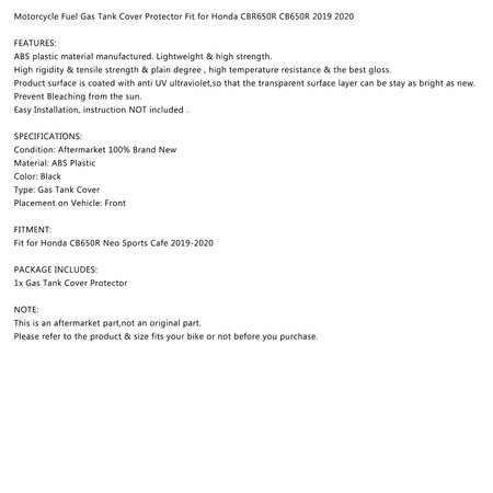オートバイ燃料ガスタンクカバープロテクター ホンダ CBR650R CB650R 2019 2020に適合