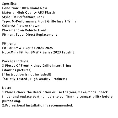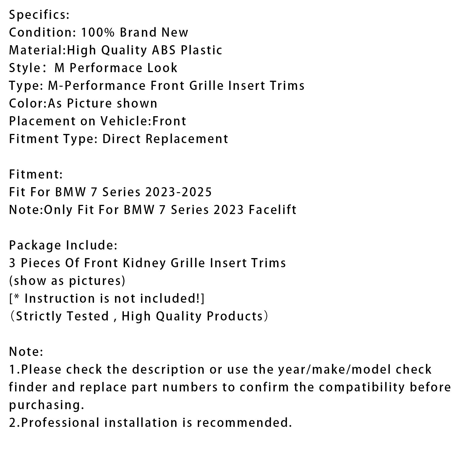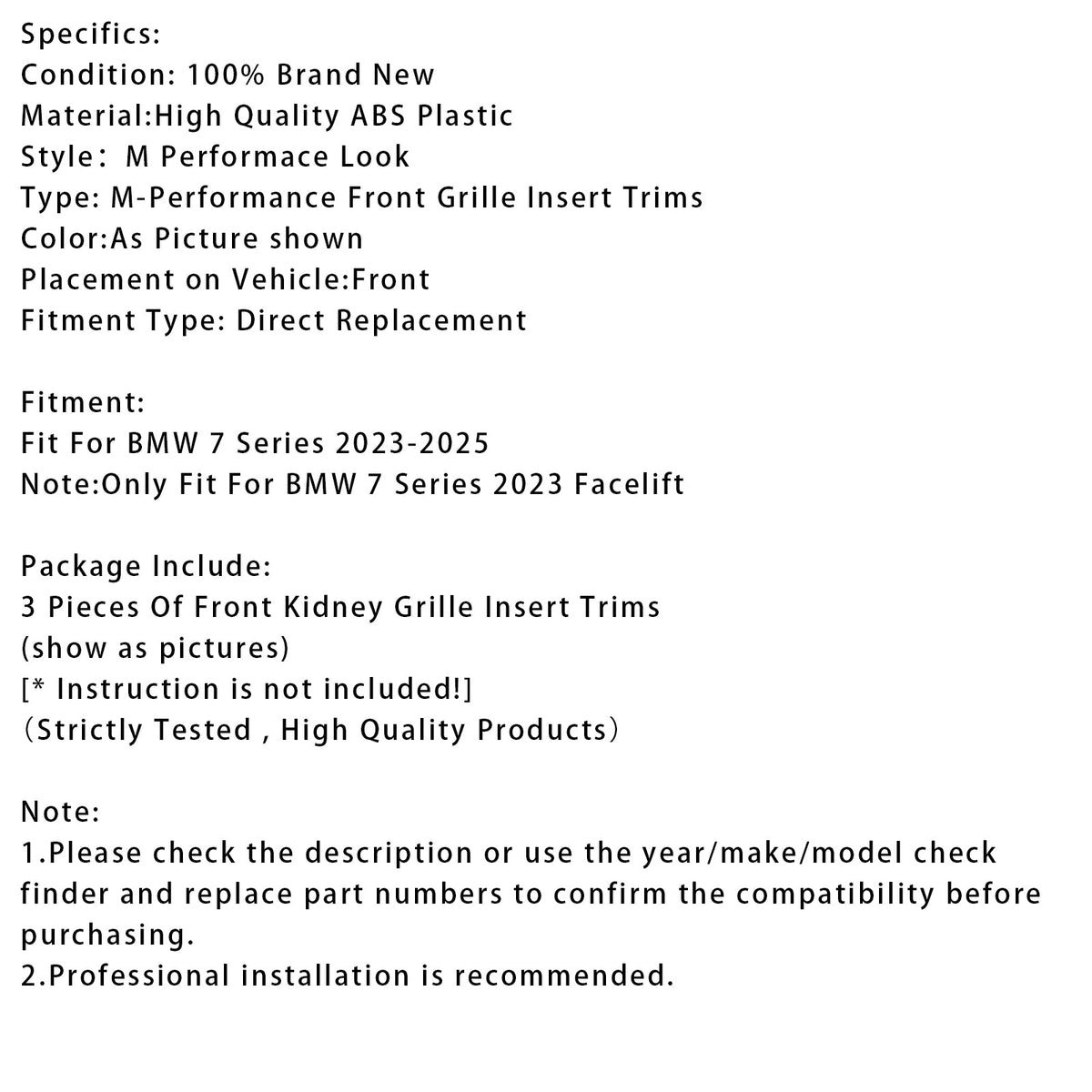 3色ABSフロントキドニーグリルインサートトリムクリップフィットBMW 7シリーズ2023-2025