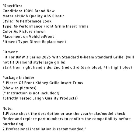 3色ABSフロントキドニーグリルインサートトリムクリップフィットBMW G20 3シリーズ2025用