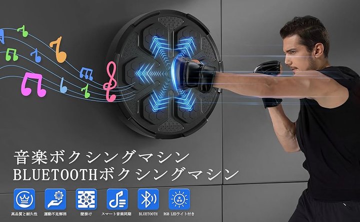 音楽ボクシングマシン ボクシンググローブ付き ボクシングマシン Bluetoothボクシングマシン ストレス解消 運動不足解消 LEDライト付き 家庭用 Bluetooth互換接続 music boxing machine スマート音楽同期 壁掛け 取り付け簡単 高い柔軟性 騒音を低減 音楽ボクシング