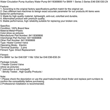 水循環ポンプ 補助ウォーターポンプ 64118369806 BMW 1シリーズ 3シリーズ E46 E90 E93 Z4用